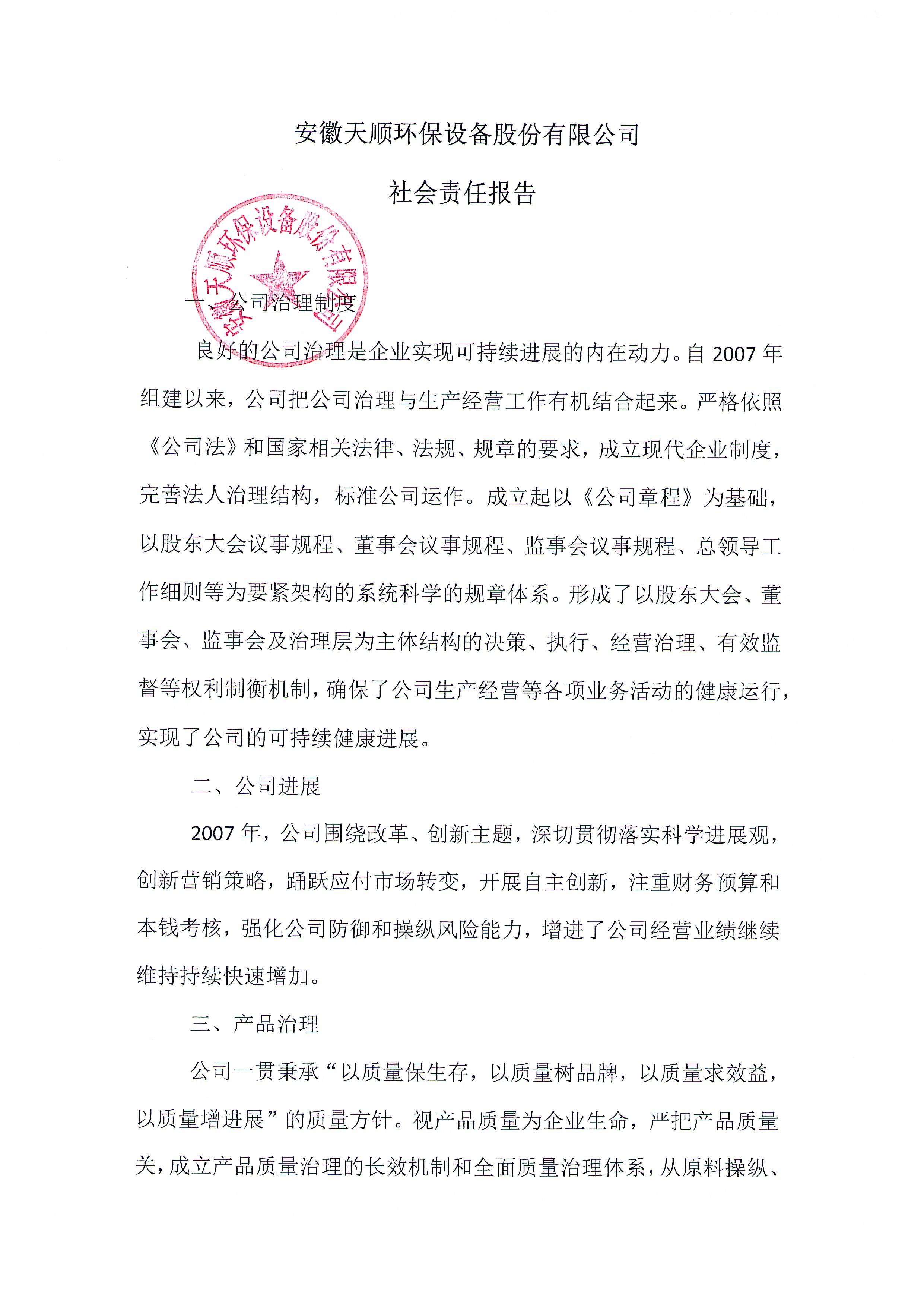 安徽天順環(huán)保設(shè)備股份有限公司社會(huì)責(zé)任報(bào)告